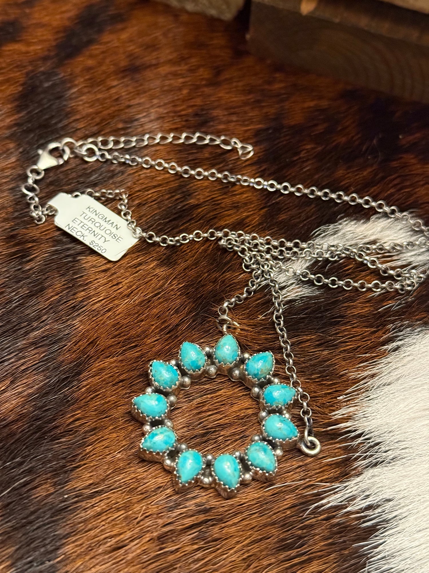 Sterling Silver Handmade Kingman Turquoise Eternity Necklace