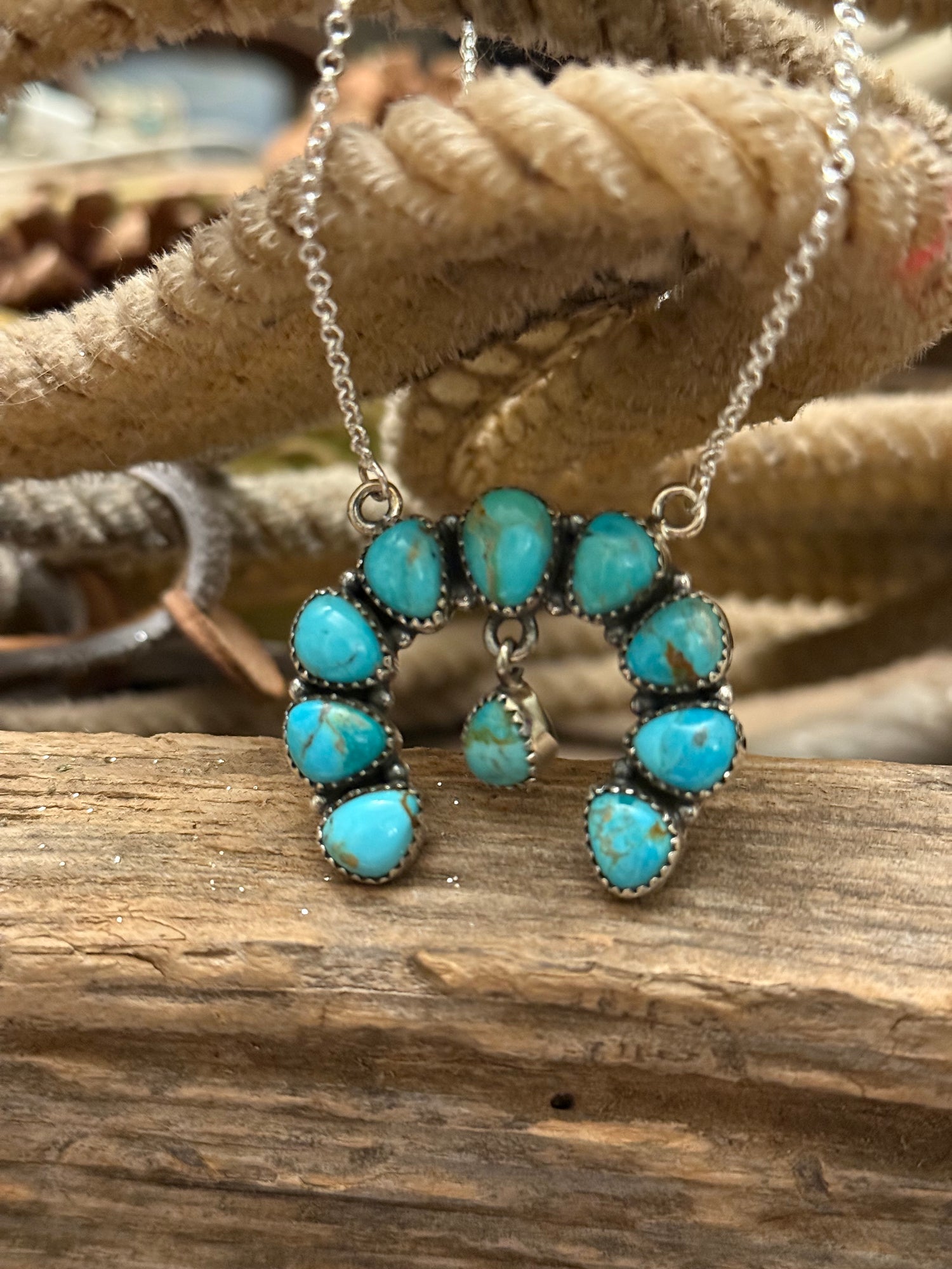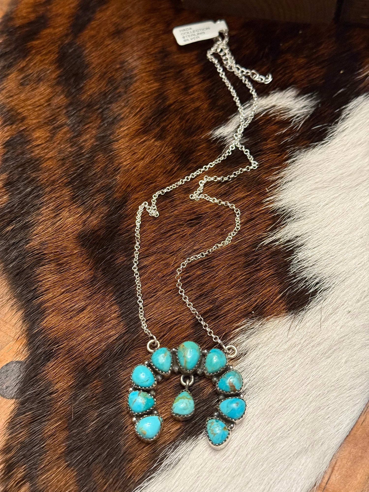 Sterling Silver Handmade Kingman Turquoise Naja with Dancing Stone Necklace