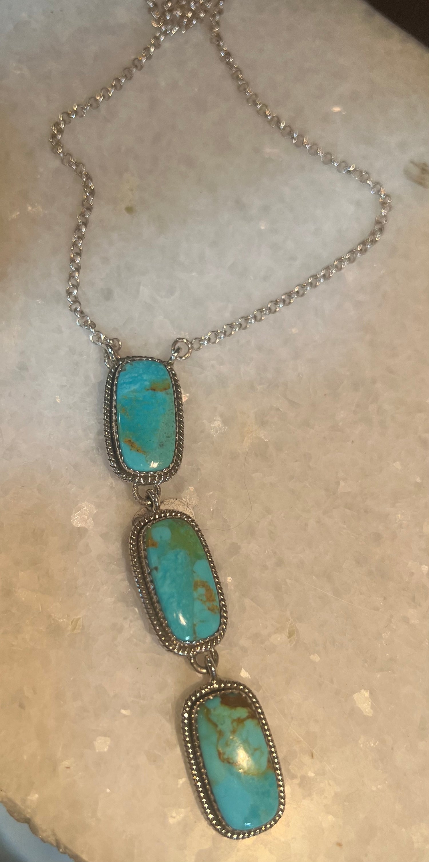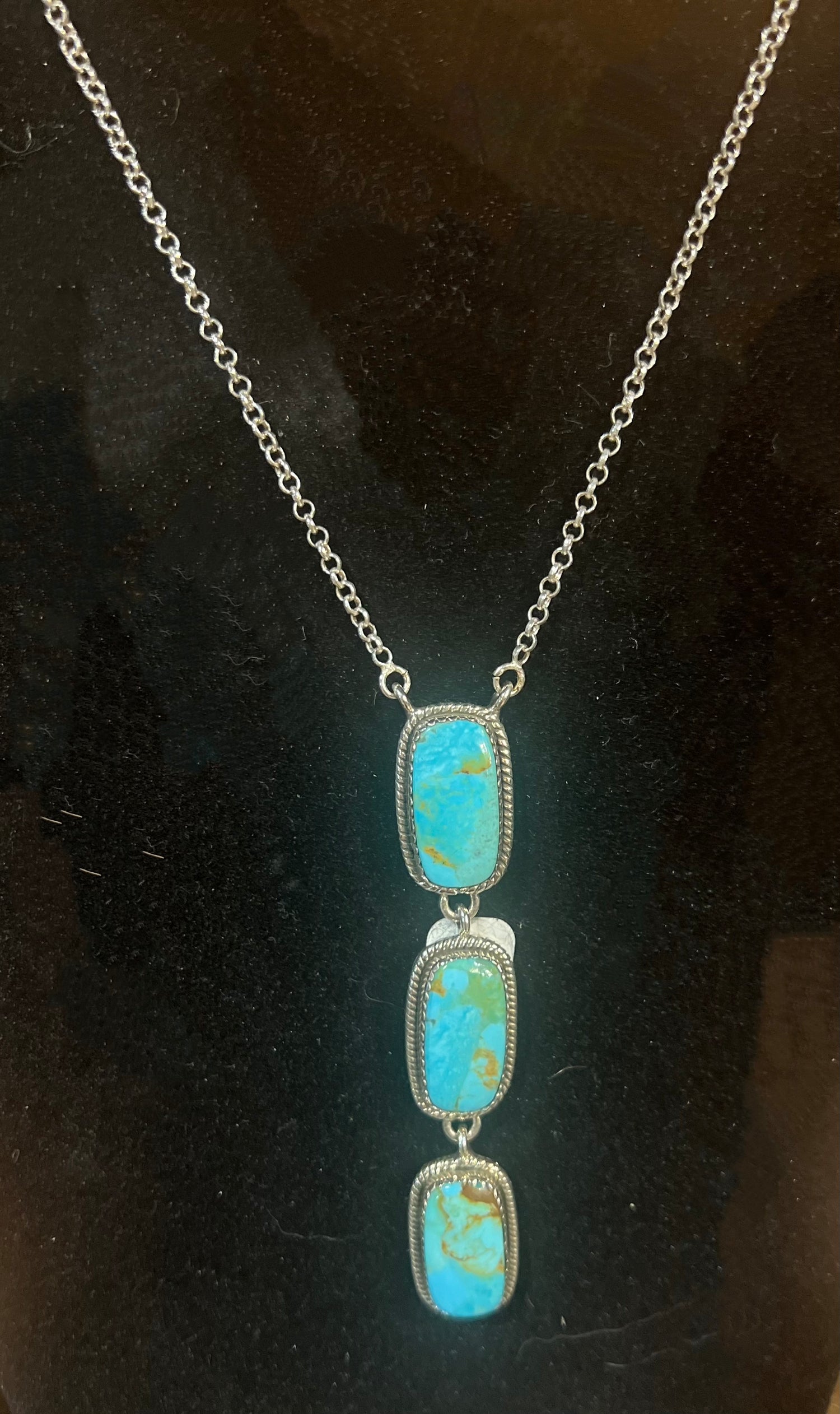 Hand made Sterling silver Kingman turquoise Bar Necklace with adjustable chain