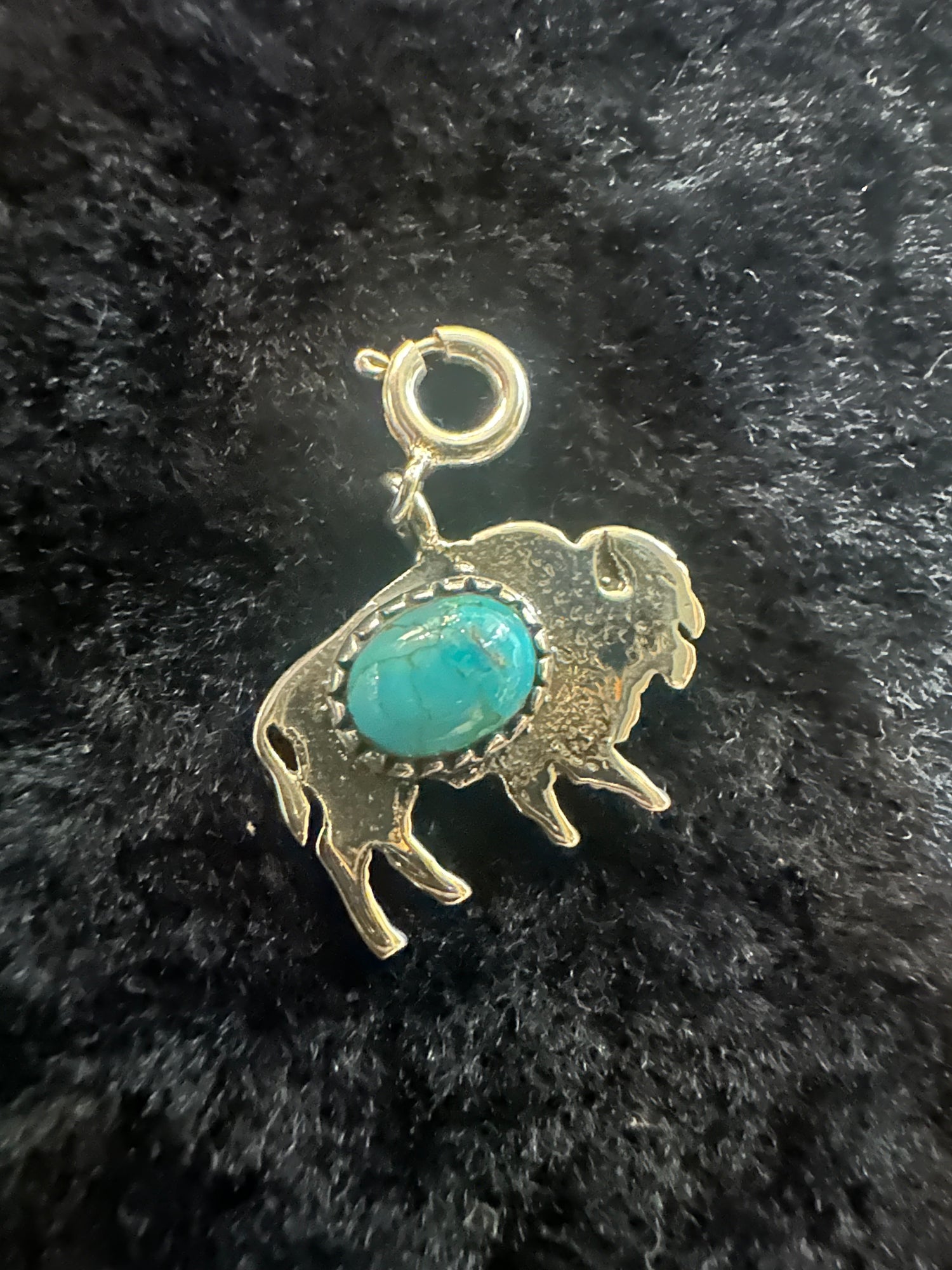 Sterling Silver Kingman Turquoise Charm Buffalo w/ Turquoise