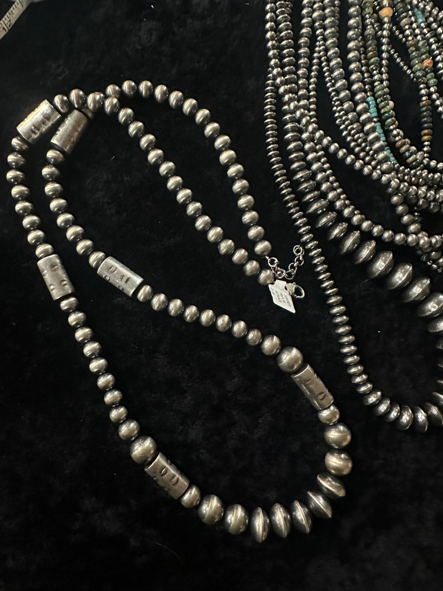Sterling Silver Navajo Designer Pearl Necklace 32”
