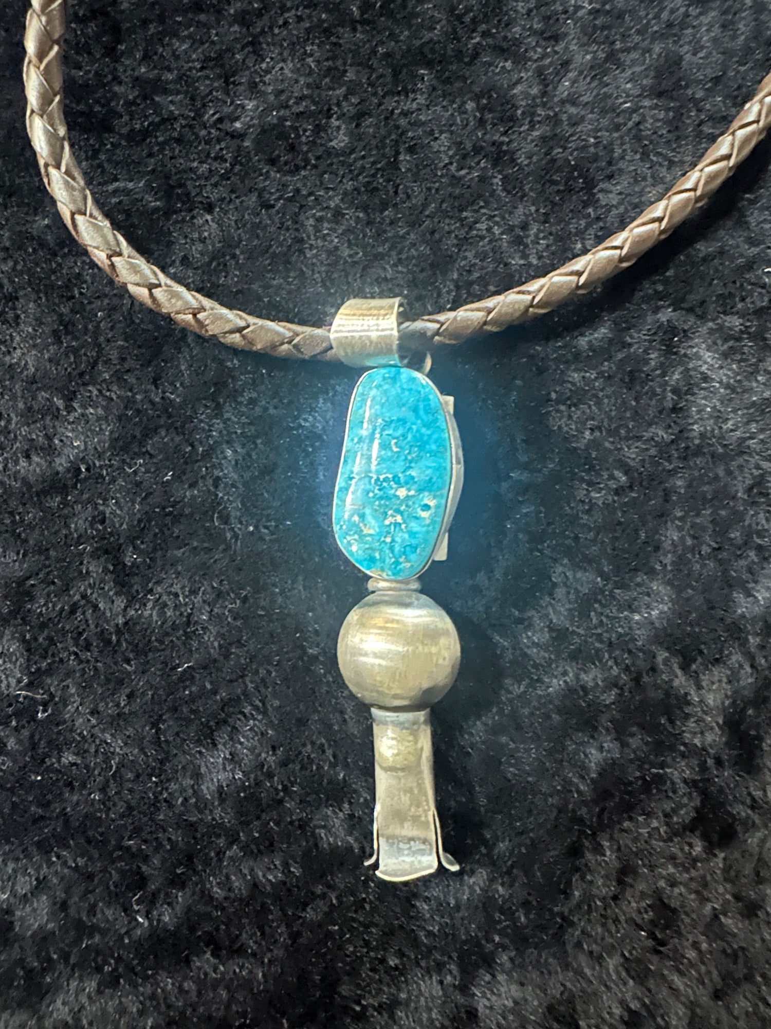 Sterling Silver Leather Necklace with Turquoise Blossom Pendant by Tia Long