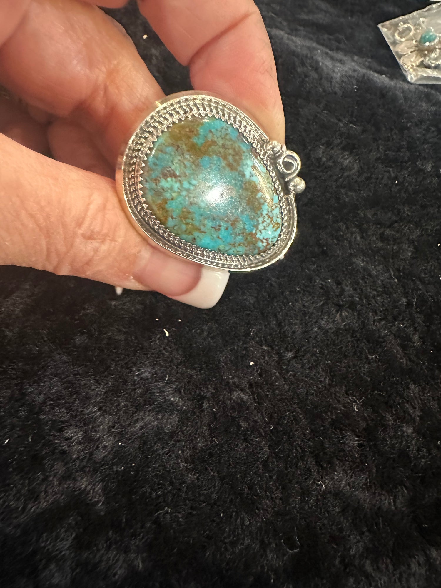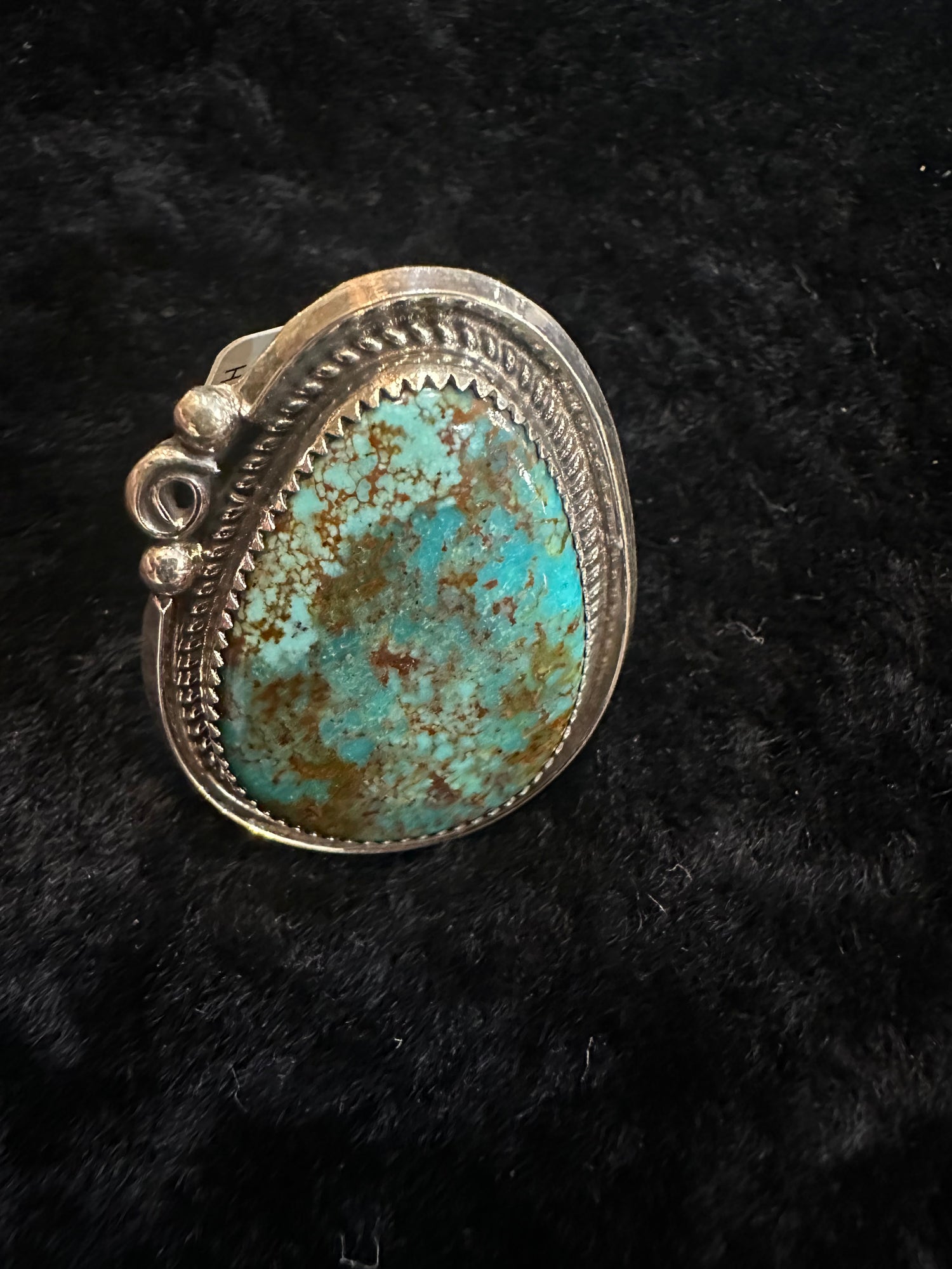 Sterling Silver Kingman Turquoise Navajo Handmade Marked by LElsie Nez Size 10 Ring 1 1/2” long