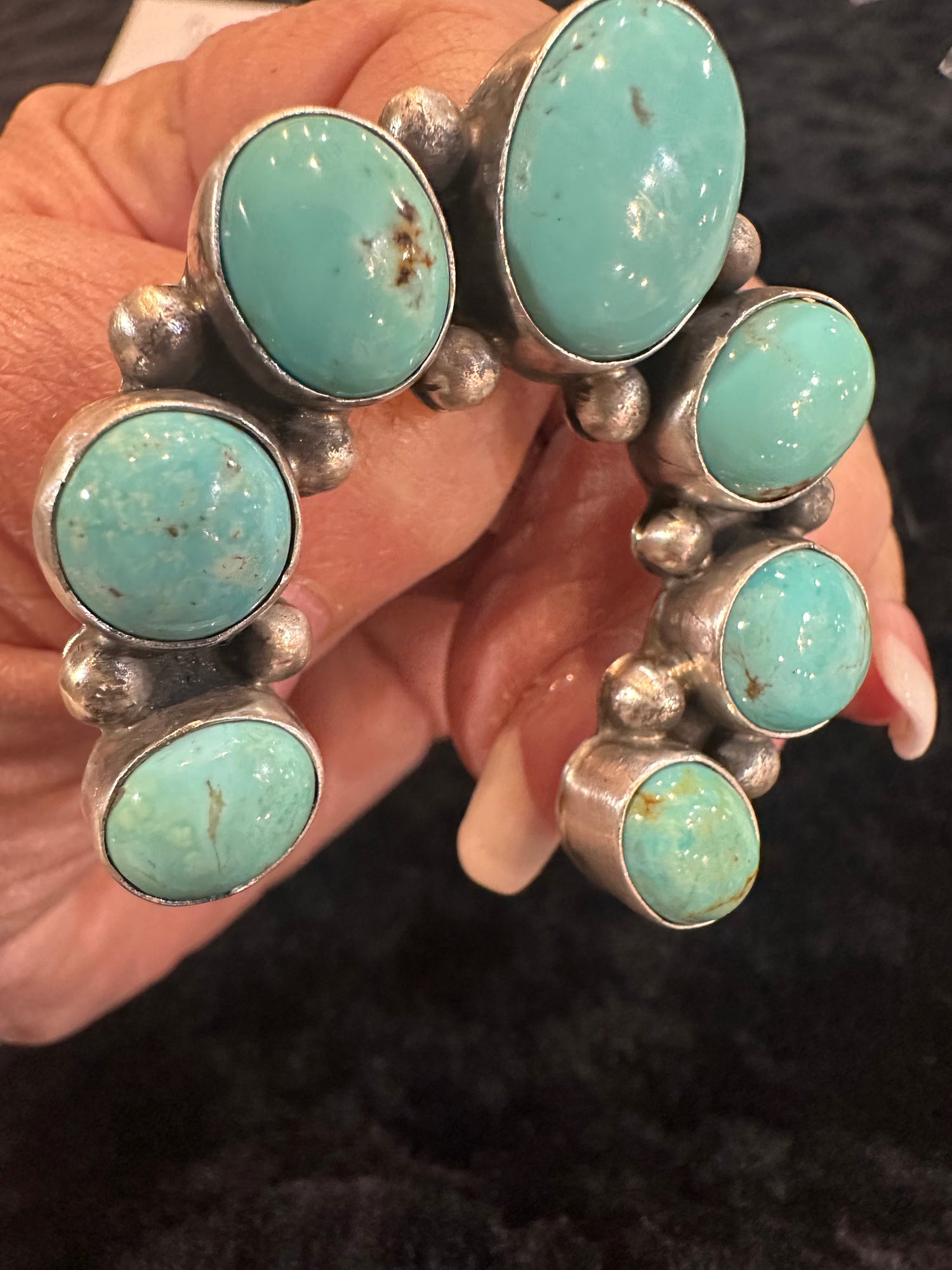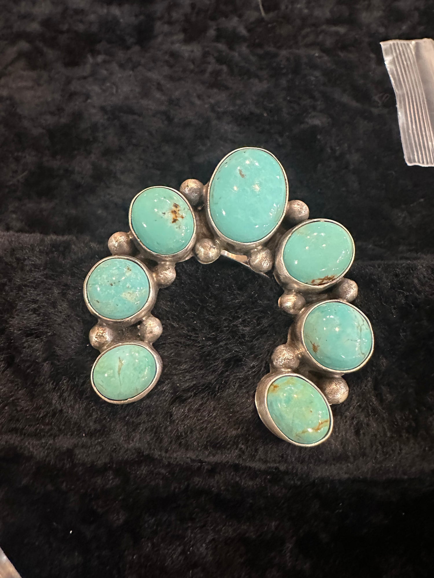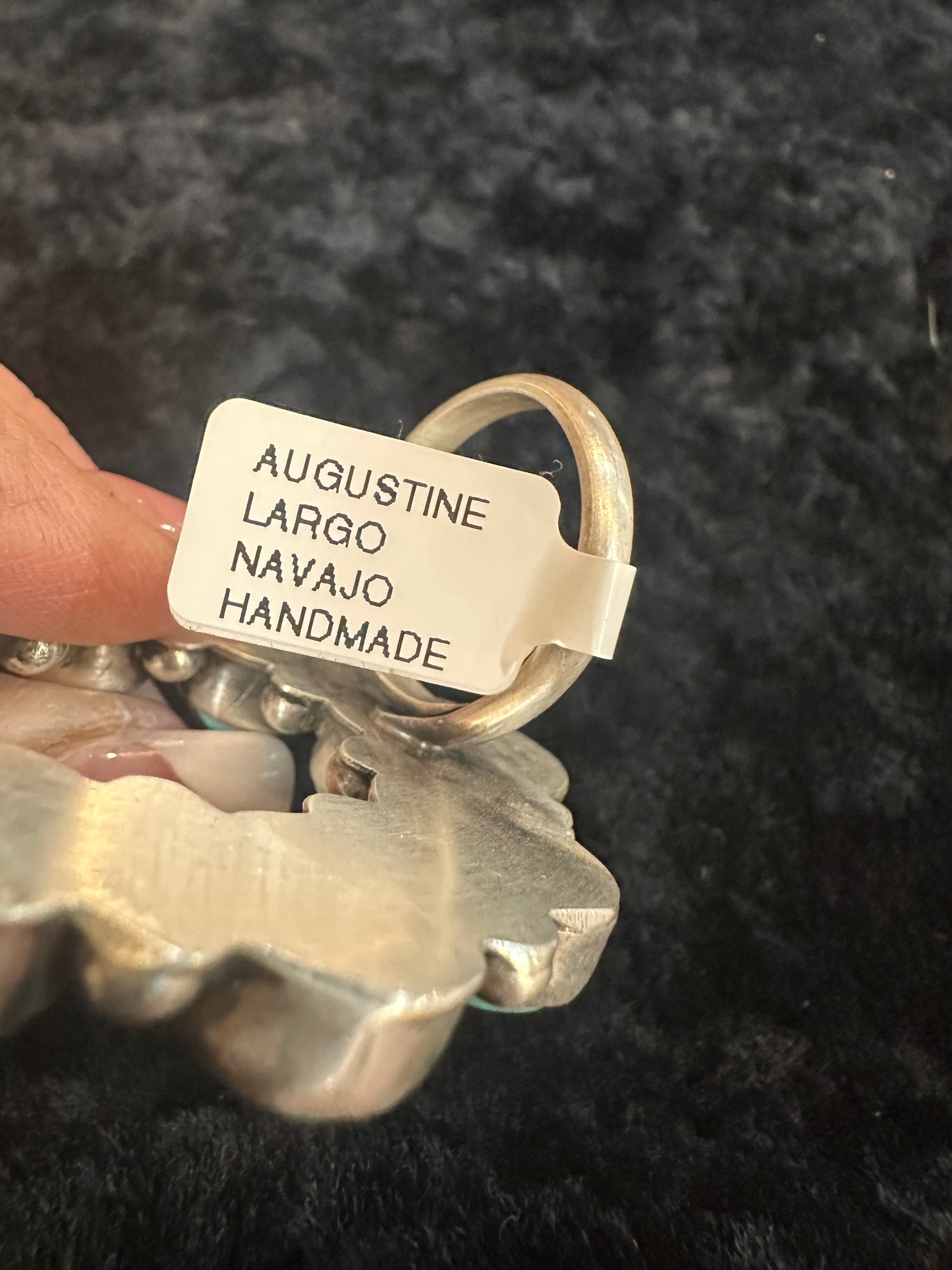 Sterling Silver Kingman Turquoise Navajo Handmade Marked by Augustine Largo Size adjustable Ring 1 3/4” long