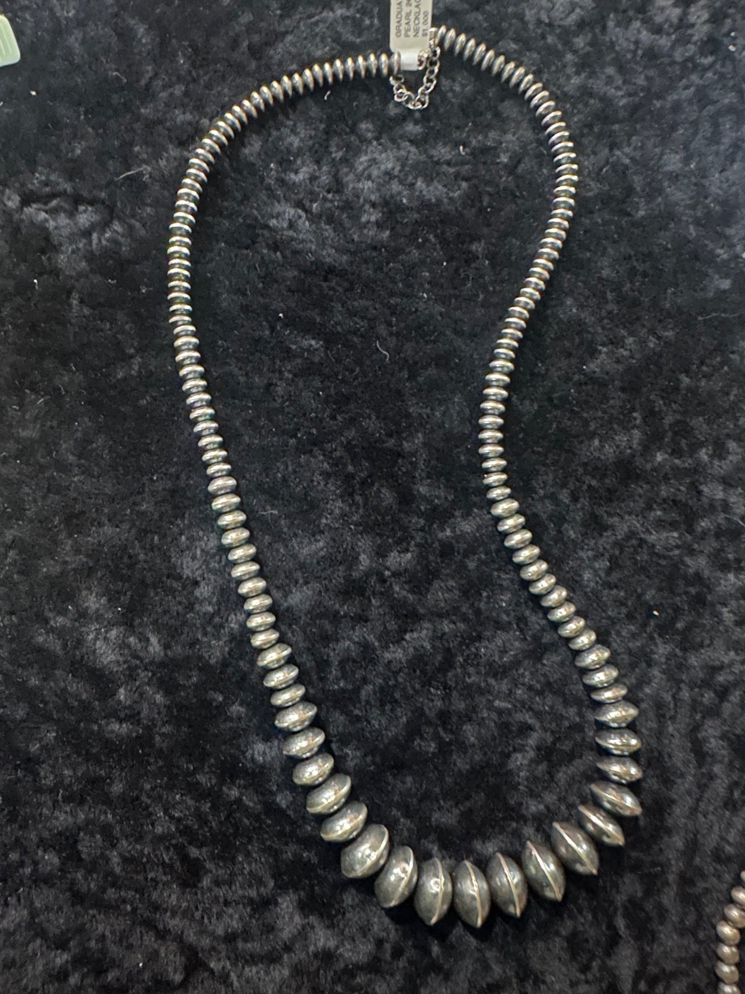 Sterling Silver Navajo Pearl Graduated Disc Necklace 24”