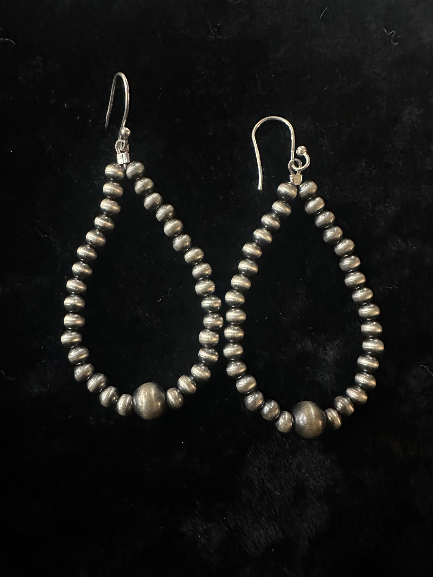 2 1/2” hanging Sterling Silver Pearl Earrings 4mm w/ 6mm center bead