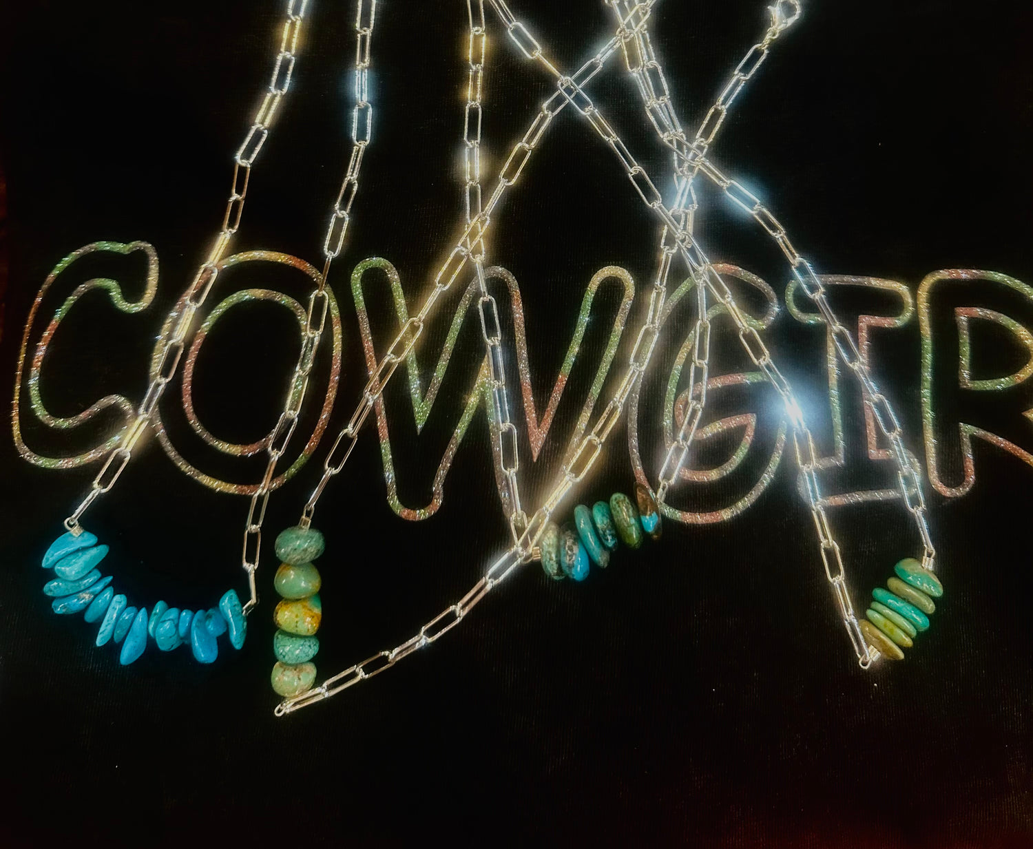 Sterling Silver Plated Genuine Turquoise Paper Clip Necklace