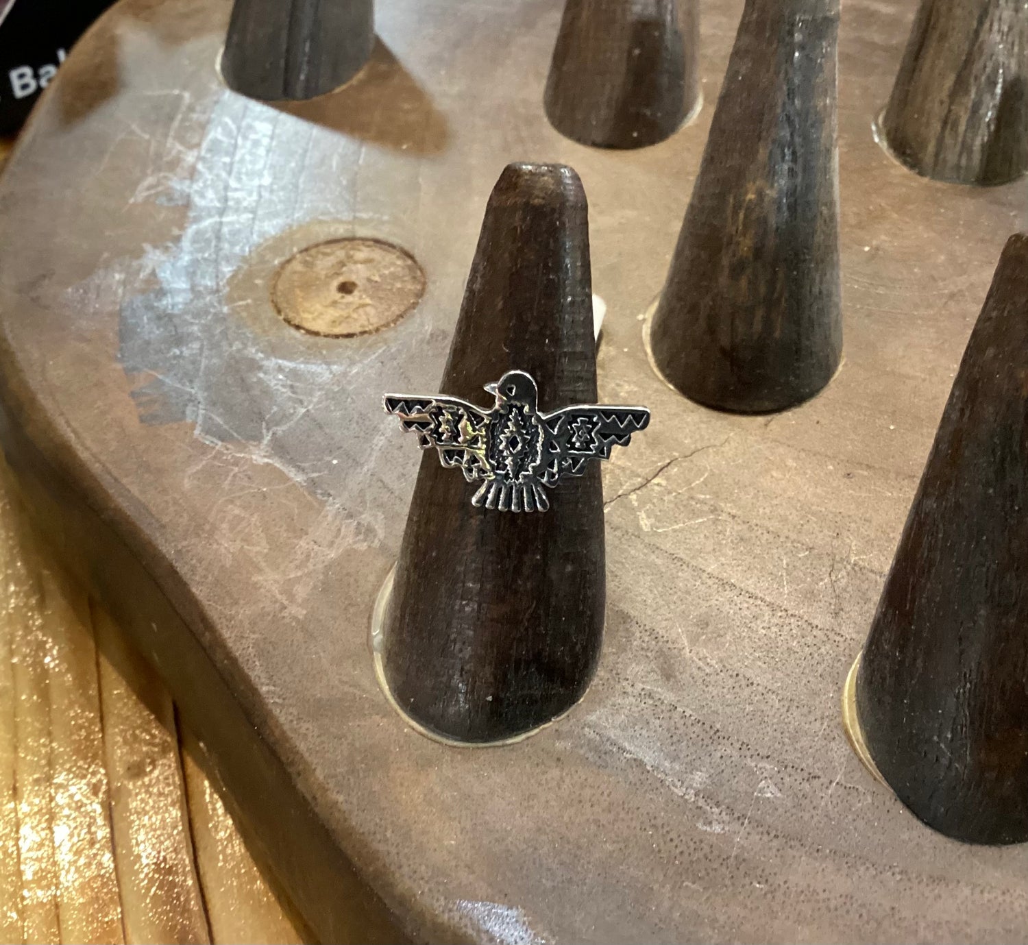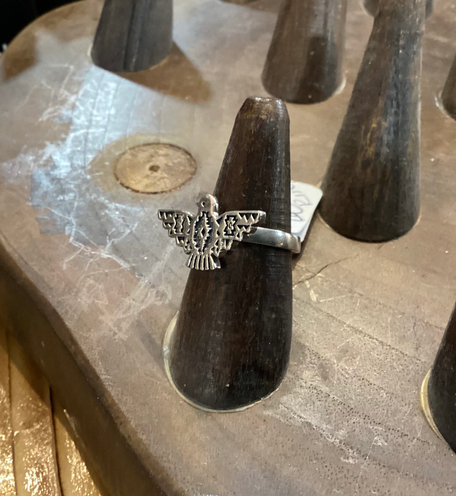 This beautiful Aztec print thunderbird ring is the perfect addition to any jewelry box! Size 6.