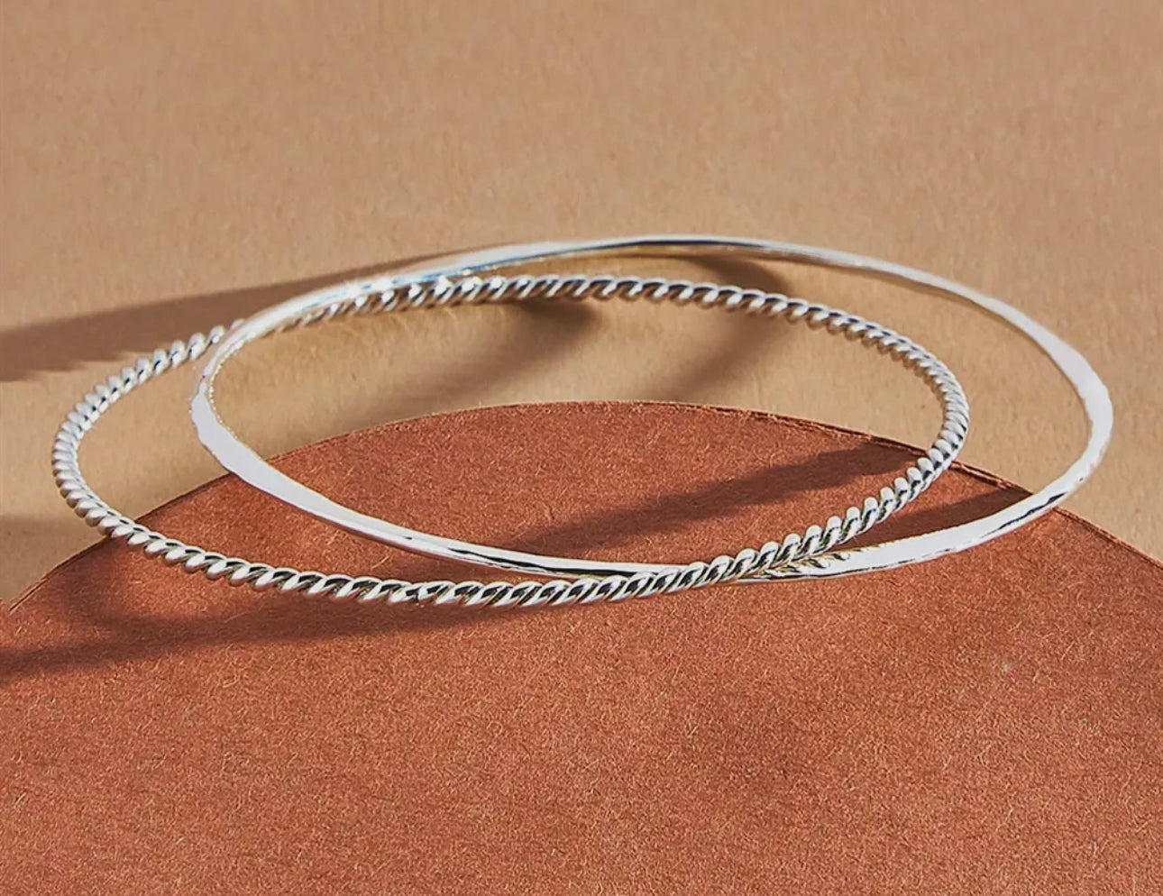 Sterling Silver Twist & Hammered Entwined Bangle Bracelets