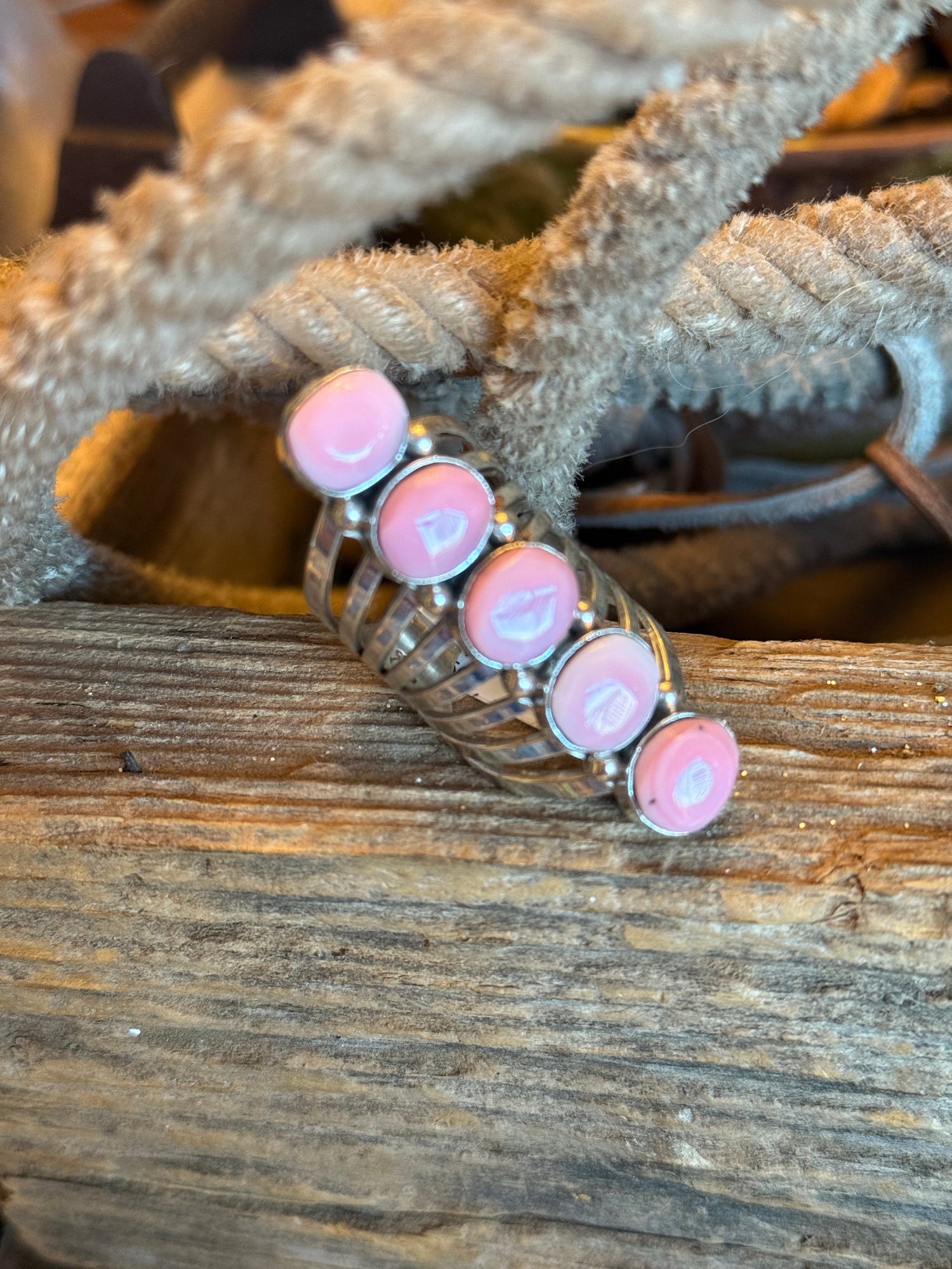 Thomas Yazzie Navajo Sterling Silver 5 Stone Pink Conch Handmade Ring marked