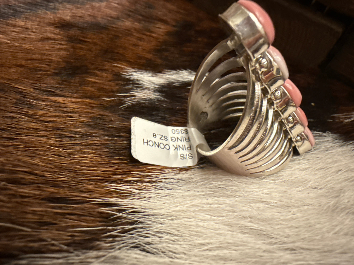 Thomas Yazzie Navajo Sterling Silver 5 Stone Pink Conch Handmade Ring marked size 8