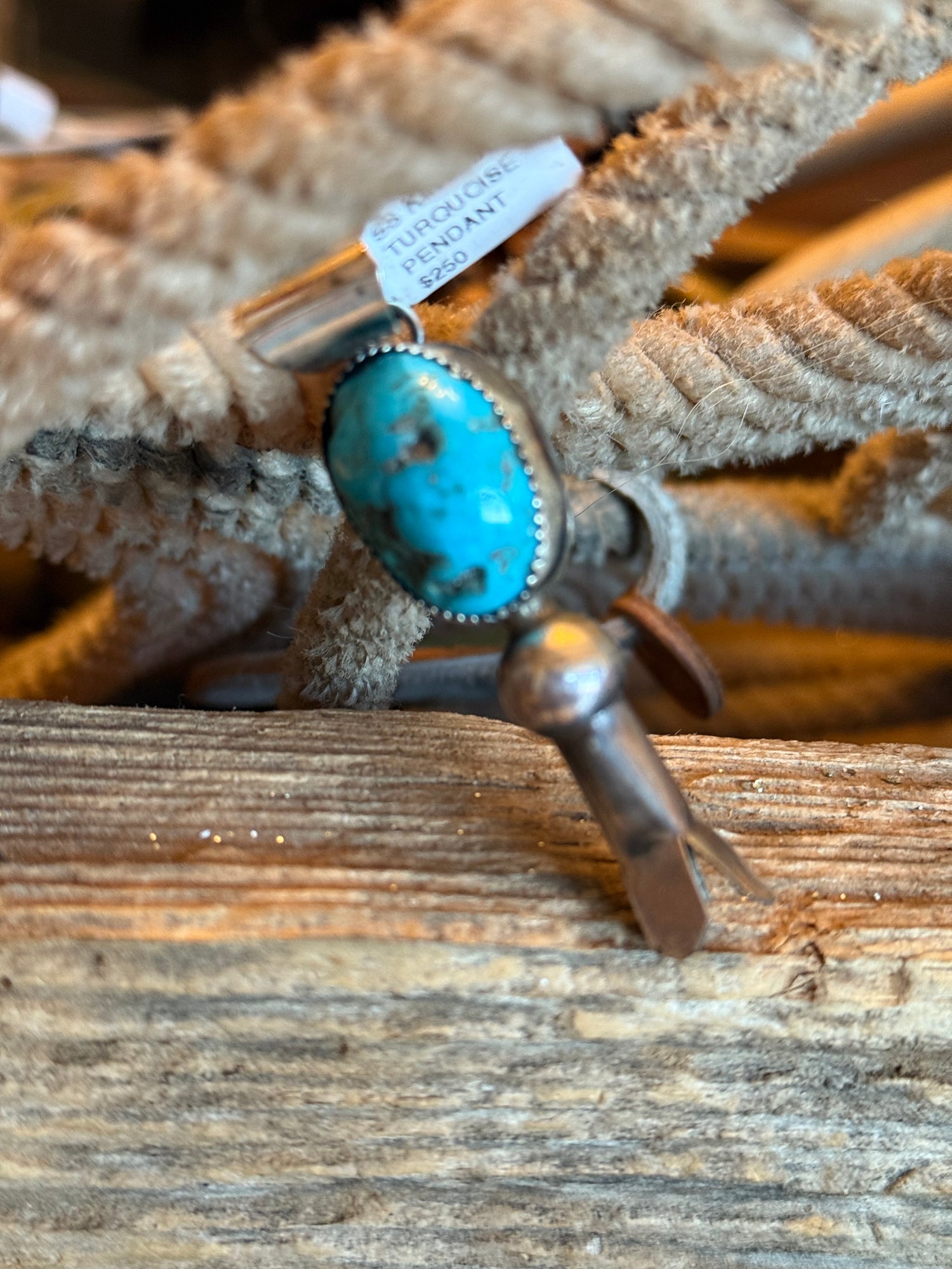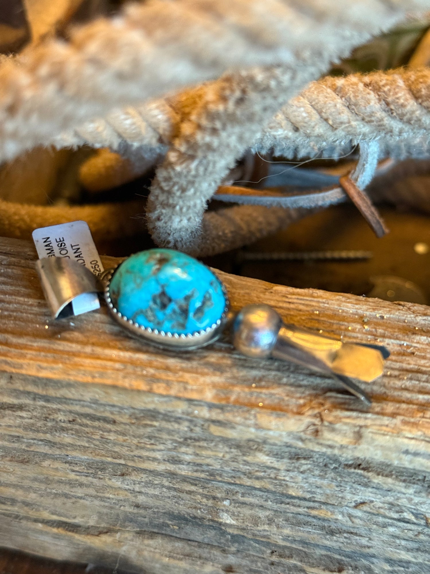 Tia Long Navajo HandMade .925 Kingman Turquoise Blossom Pendant