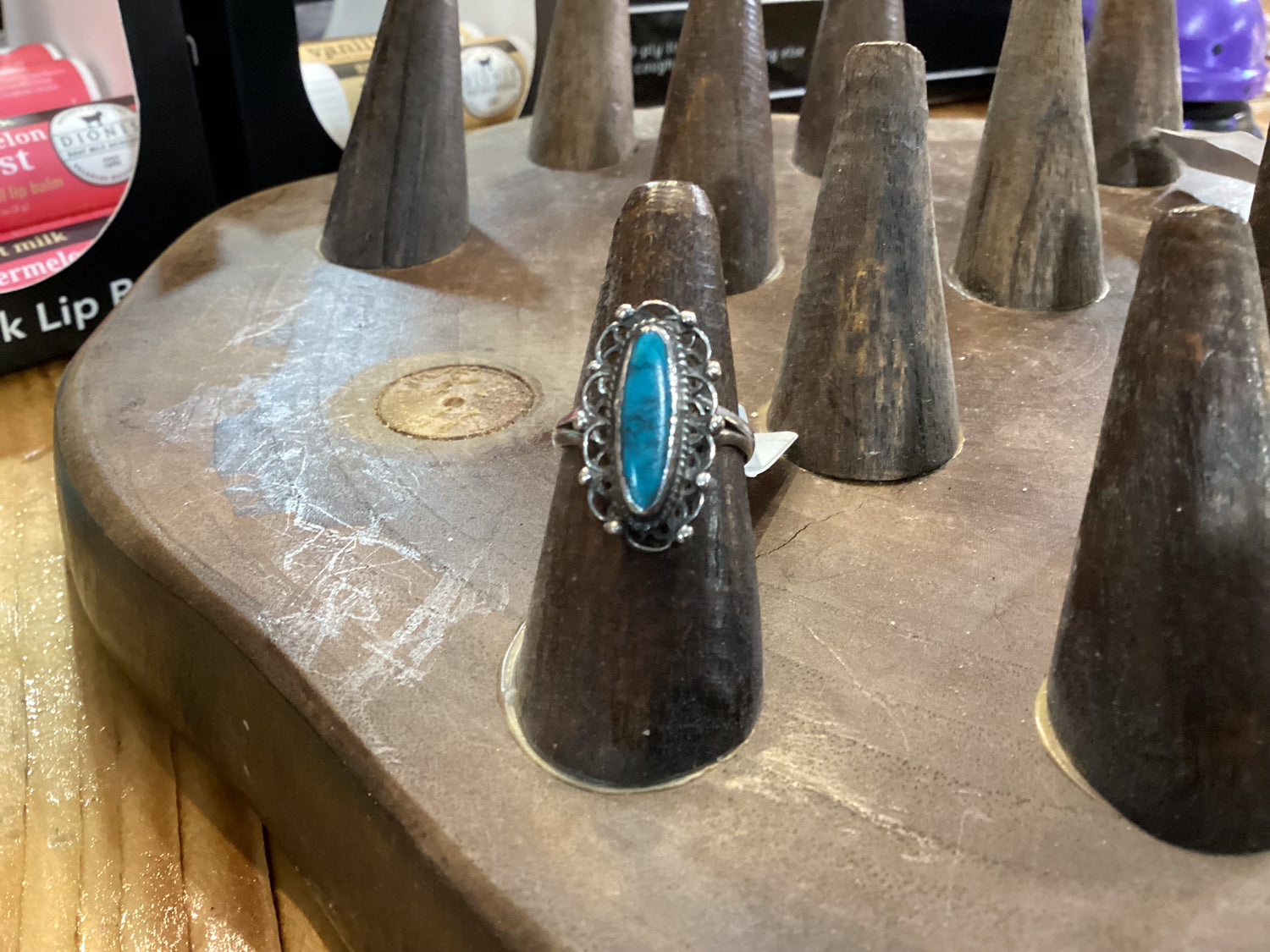 This dainty turquoise ring is perfect for tiny fingers! Size 5.