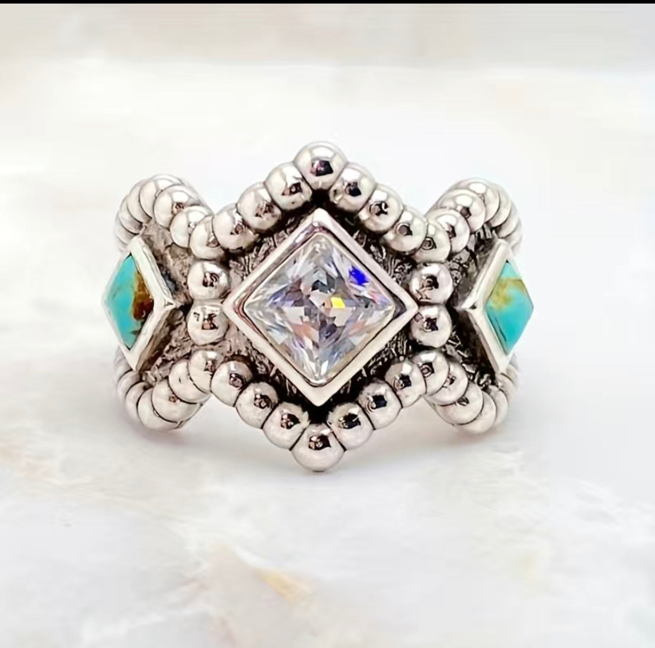Antique Silver Plated & Faux Turquoise Ring
