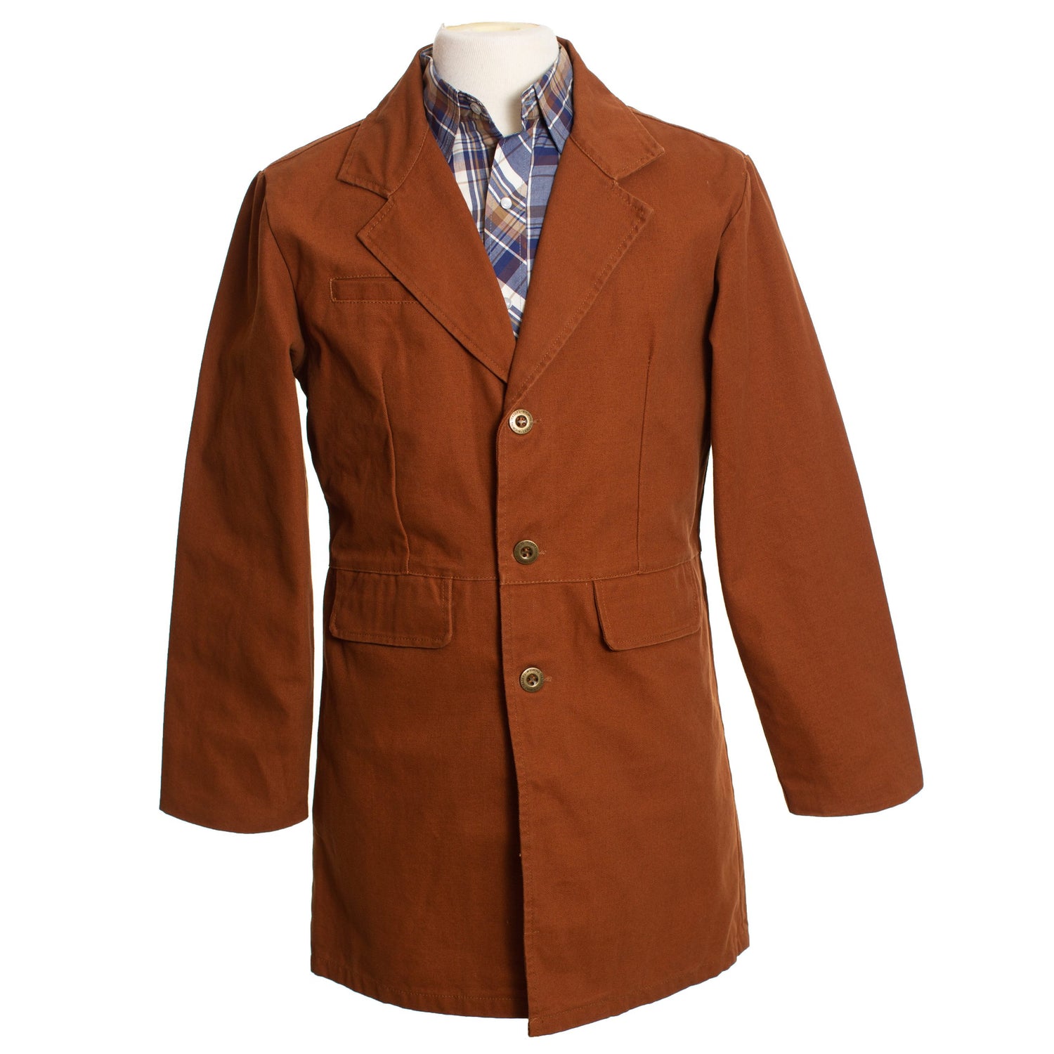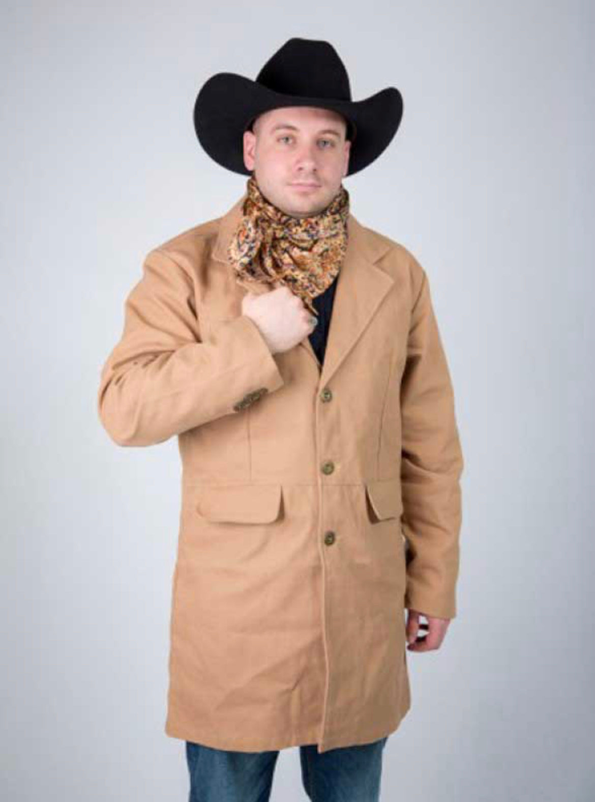 The Canvas Frock Coat has reinforced stitching throughout. This frock has two hand pockets with flaps at the waist and a chest welt pocket on the right upper chest. Inside you will find the frock is lined with a polyester satin lining and has a wallet patch pocket. The three brass button on the front and three decorative brass buttons on each sleeve giving the coat a great final touch. Can be used for any historical reenactment.
