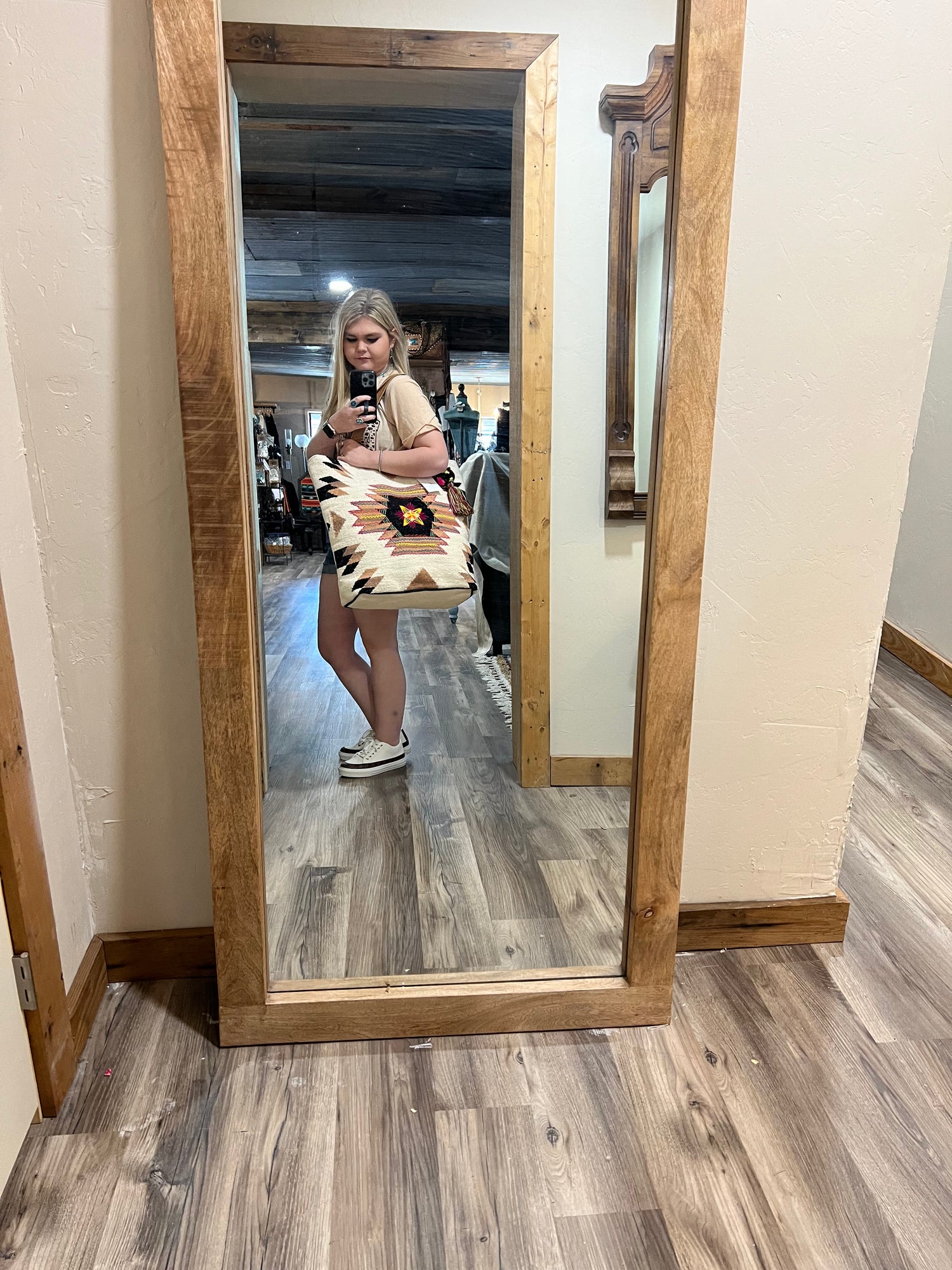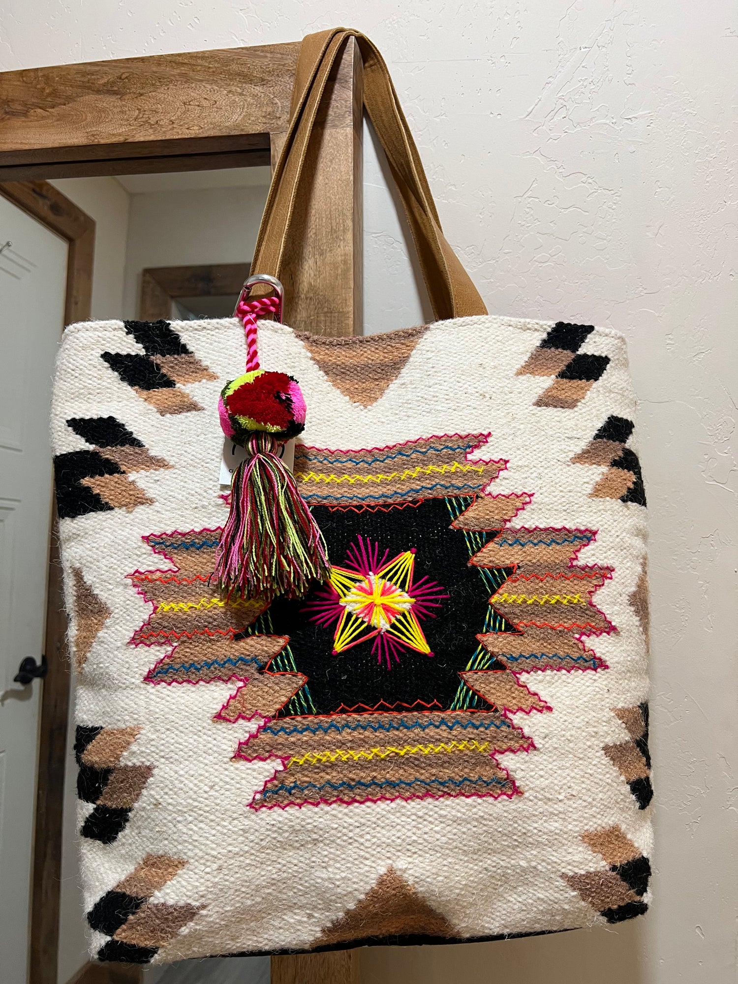This Aztec multicolor rug bag features vibrant colors and stunning patterns, making it an eye-catching addition to any space. High-quality construction ensures you can enjoy this rug bag for years to come.