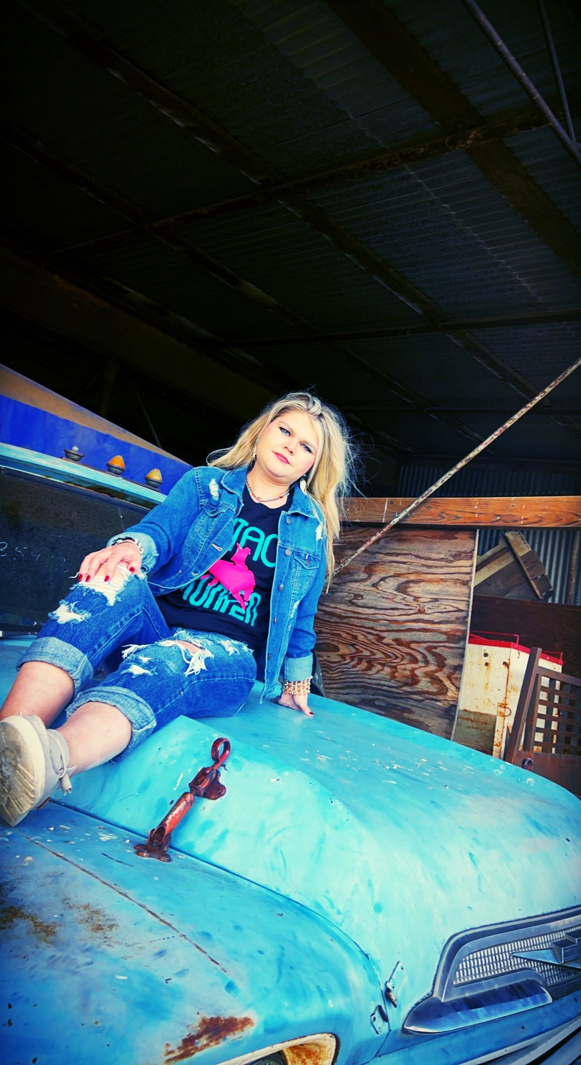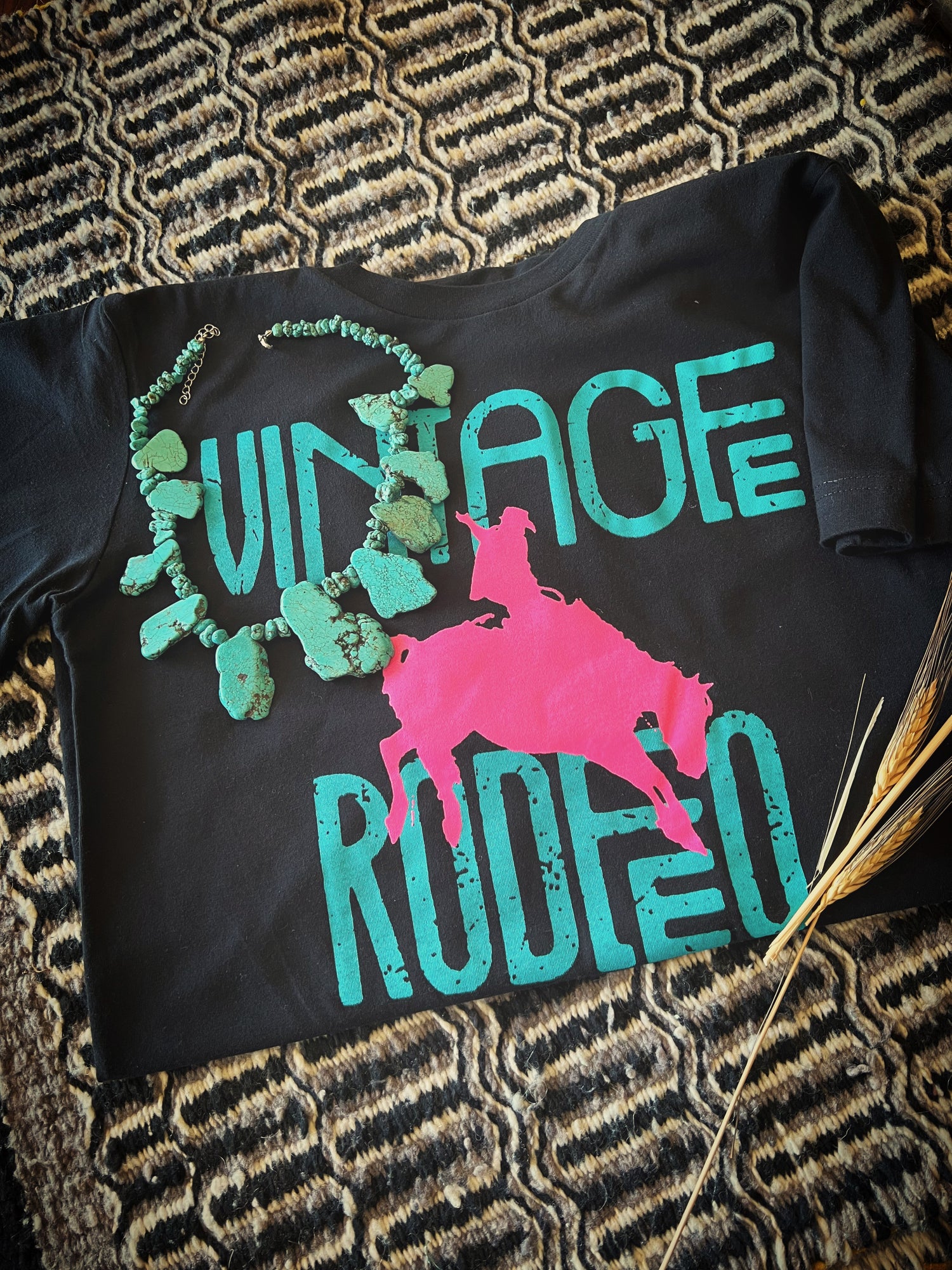 Vintage Rodeo t-shirt, pink black turquoise bronc