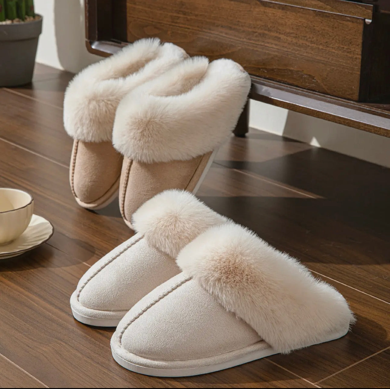EASY SLIP ON STYLE:Step into comfort easily with these open back fuzzy bedroom slippers that are made with fluffy plush.