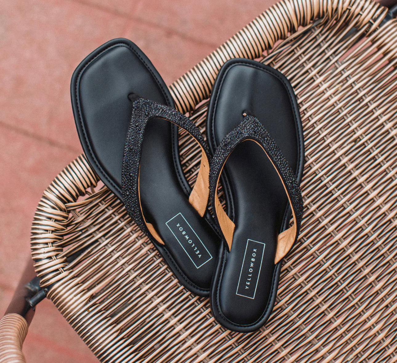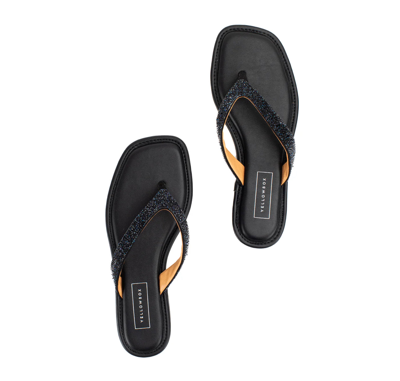 Bling is back and we want it every-which-way. The DELLA embellished flip-flop sandals may just be your favorite pair this season, combining a chic square toe silhouette, simple sparkle, and an ultra padded footbed made of our signature high rebound foam.