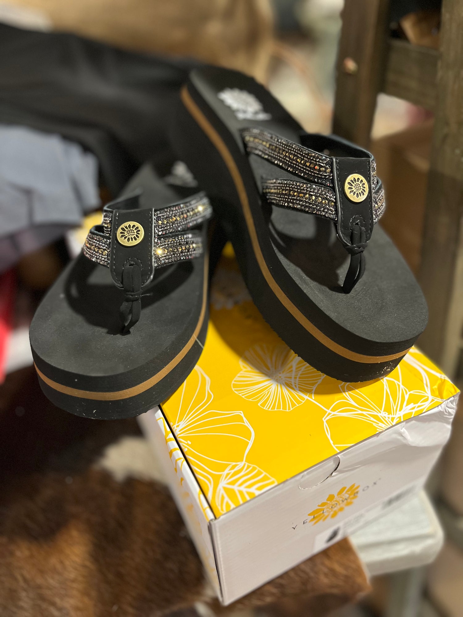 KRISTA is a lightweight flatform that features a double-strap upper adorned with sparkling rhinestones and an adorable center logo stud. This sandal bottom has a medium-height wedge and a contoured footbed for comfort with every step.